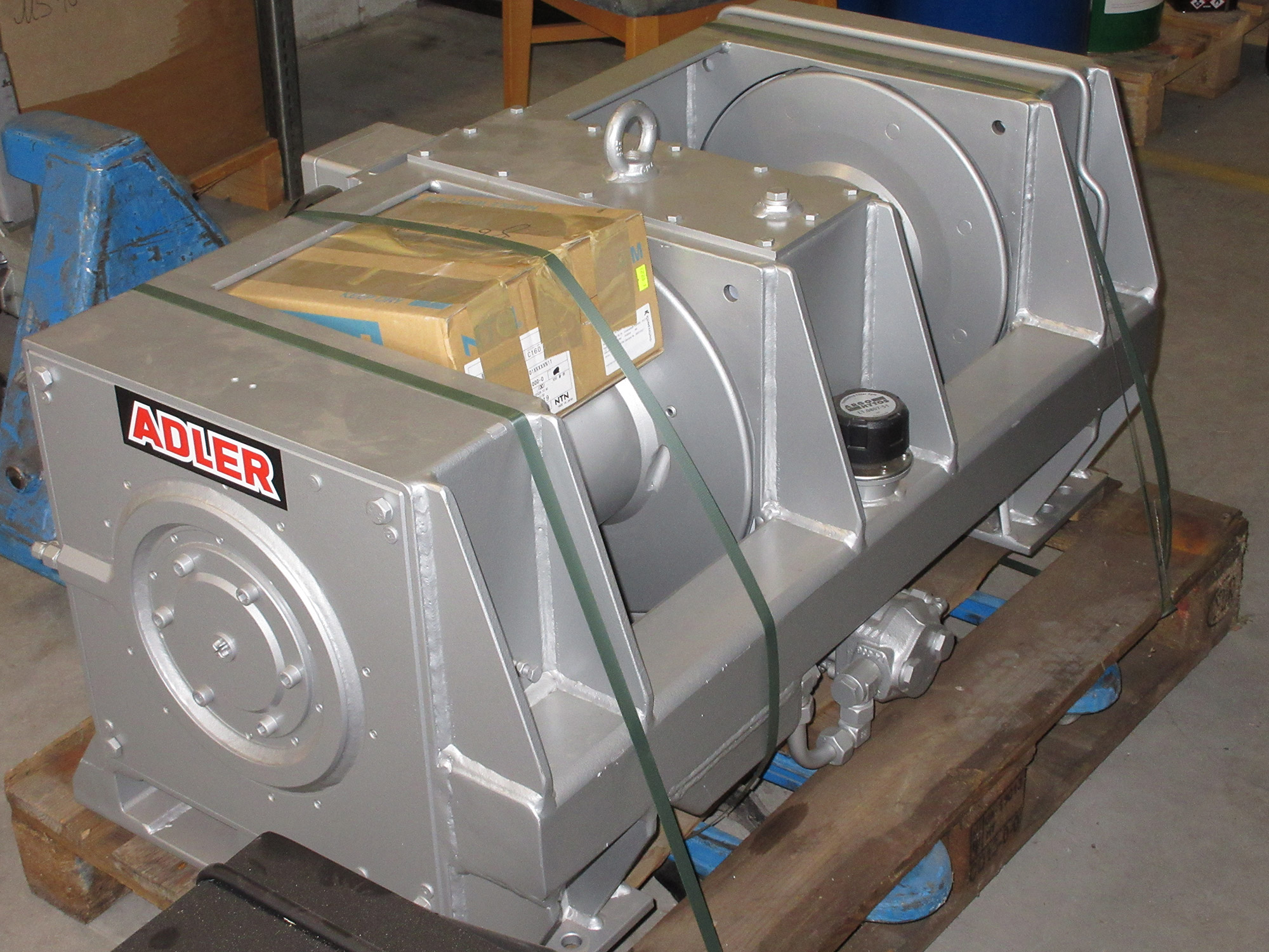 Winde mit 2 x 13 t Zugkraft, Getriebe 2L (1:18), 12 V, für Funk vorbereitet, mit 1 Jahr Garantie.